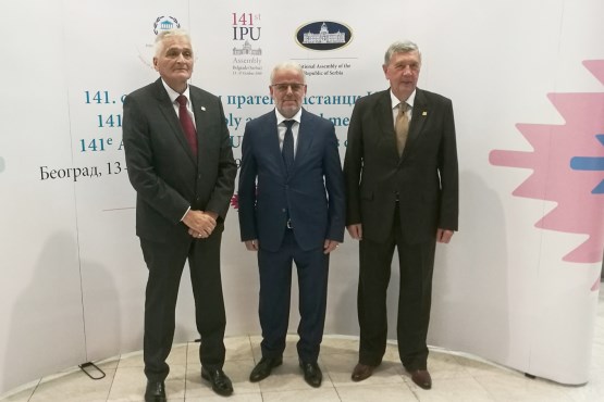 Zamjenik predsjedavajućeg Predstavničkog doma Parlamentarne skupštine Bosne i Hercegovine (PSBiH) Nebojša Radmanović i zamjenik predsjedavajućeg Doma naroda PSBiH dr. Nikola Špirić susreli su se danas u Beogradu, na marginama 141. zasjedanja Skupštine Interparlamentarne unije, sa predsjednikom Sobranja Republike Sjeverne Makedonije Talatom Xhaferijem.