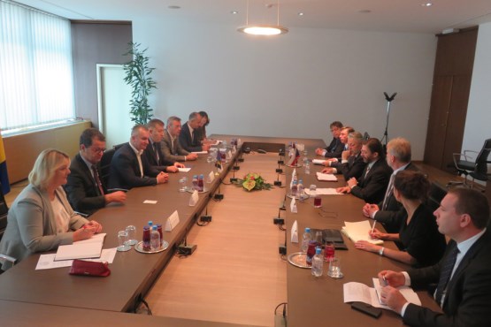 Чланови Комисије за спољну и трговинску политику, царине, саобраћај и комуникације Дома народа Парламентарне скупштине Босне и Херцеговине (ПСБиХ) Сеад Кадић, Марио Караматић, Огњен Тадић и Мартин Рагуж разговарали су данас у Сарајеву са члановима Делегације Одбора за спољне послове, одбрану и безбједност Сената Чешке Републике, који бораве у вишедневној званичној посјети нашој земљи.